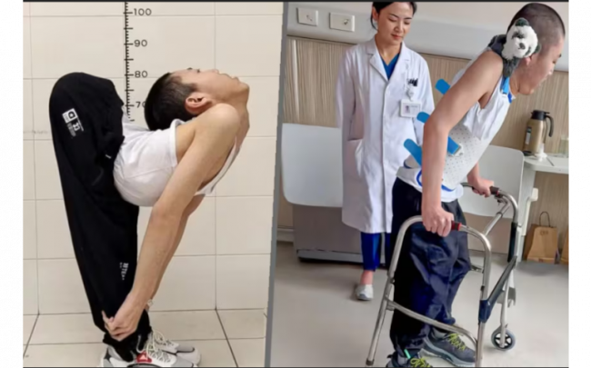 Төрөлхийн нуруу нугасны гажигтай, бөгтөр нуруутай өдийг хүрсэн хятад залуугийн мэс засал амжилттай болжээ. “South China Morning Post” сонины мэдээлснээр, Хятадын Шаньдун мужийн жижиг тосгонд төрсөн, эдүгээ 22 настай Жан овогт сүүлийн хоёр жил нуруу тэгшлэх мэс засал болон нөхөн сэргээх эмчилгээ хийлгэсний дүнд бүтэн биеэрээ цэх зогсож чаддаг болсон бөгөөд эмч нар түүний бэлхүүс, нуруу, хүзүү, хонго, цээжний зарим ясыг хугалж, дахин эвлүүлэх хагалгаа хийсэн байна. Тэрбээр бага насандаа эмнэлгийн зохих тусламж авч чадаагүйгээс ийм гажигтай болсон гэнэ. Гэвч хүү сургуульд орж, хэвтээгээрээ хичээлээ үзэн шантралгүй суралцсаар 2022 онд төрөлх хотынхоо их сургуулийн эрчим хүчний инженерийн ангид элсэн оржээ. Ээж нь хүүгээ асрахын тулд багшийн ажлаа орхиж, улмаар хүүгийнхээ тухай бичлэг хийн цахим сүлжээнд нийтэлсний дараа эмч нар мэс засал хийх санал тавьсан байна. Ясны гажилтын эмчилгээний мэргэжилтэн, профессор Лян Жян хүүг гардан эмчилж, өнгөрсөн зургаадугаар сард сүүлчийн хагалгааг хийжээ. Одоогоор биеийн байдал сайн нь, зүрх судасны үйл ажиллагаа хэвийн байгаа бөгөөд нуруу нь бүрэн тэнийж, орон дээр цэх шулуун хэвтэж чаддаг болсон байна. Энэ нь 180 градусын нурууны ортопедийн мэс засал дэлхийд анх удаа хийгдсэн явдал болохыг мэргэжилтнүүд онцолжээ. Сүүлчийн хагалгааны дараа тэрбээр дэмжигчидтэйгээ олон нийтийн сүлжээгээр шууд харилцан, анх удаагаа өөрөө алхаж буй бичлэгээ хуваалцсан байна. Тэрбээр "Надад дахин төрснөөс өөрцгүй байна" гээд, их сургуулийн элсэлтийн шалгалтыг хэвтээгээрээ өгч байсан бол одоо төгсөхдөө босоогоороо шалгалтаа өгнө гэдгээ хэлжээ.