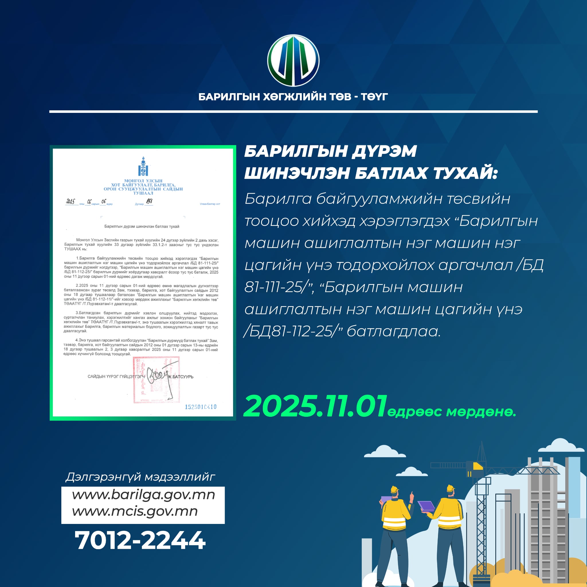 » БАРИЛГЫН ДҮРЭМ ШИНЭЧЛЭН БАТЛАХ ТУХАЙ